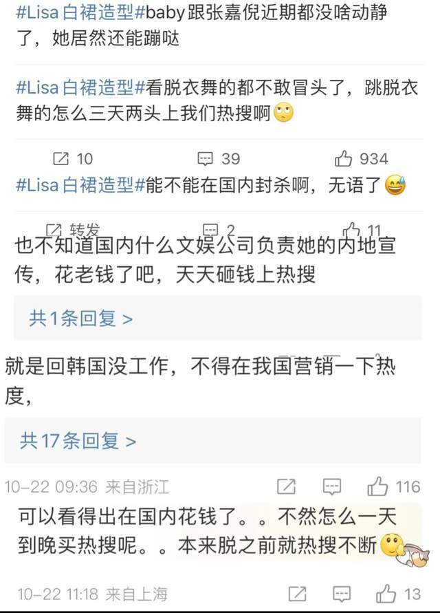 正是因为这两位艺人的隐身状态,所以一众网友不能理解为何Lisa依旧活跃,甚至以正面形象成为热搜人物,这样很容易误导年轻粉丝,让粉丝们将疯马秀上的Lisa作为效仿对象,产生极其严重的负面影响。由此可见,部分网友还是十分清醒的,希望某些韩娱团队少在内娱营销了。