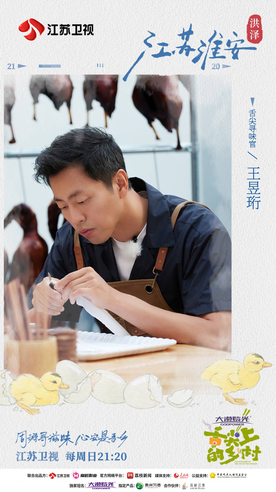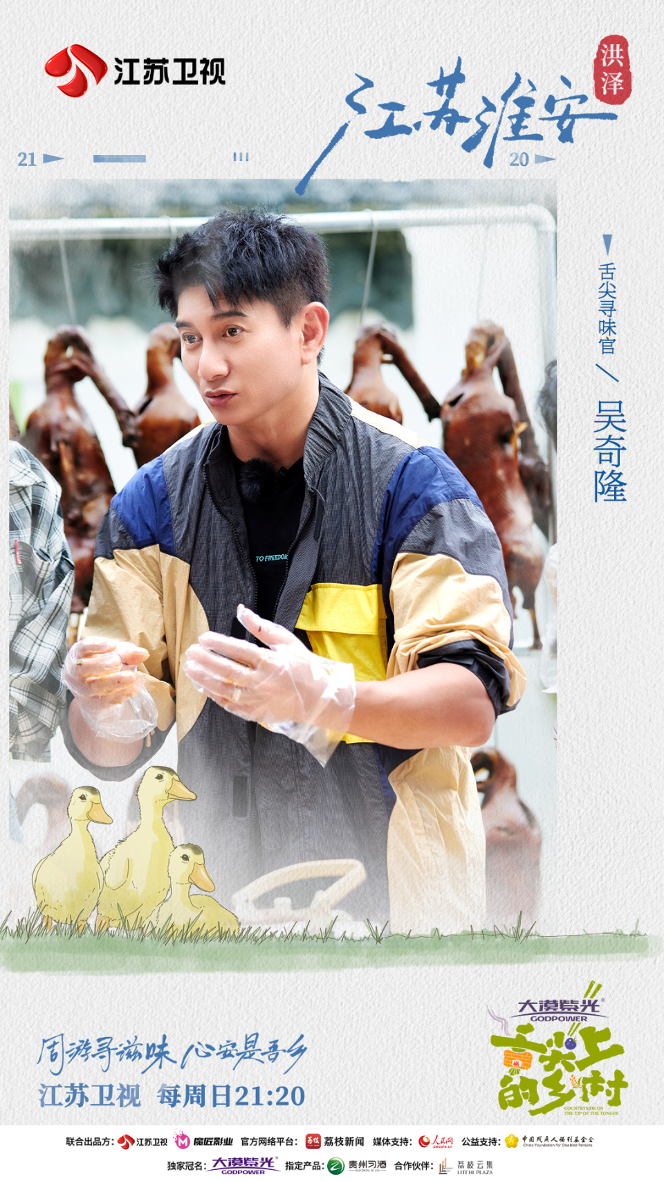 由大漠紫光独家冠名的《舌尖上的乡村》第五期节目将于今日21:20播出。“舌尖团”成员吴奇隆、王昱珩、姜妍与新朋友刘维一起前往江苏淮安,品尝正宗淮扬菜,采摘“湖三鲜”,捕捉“三花鹅”,开启全新的寻味之旅。