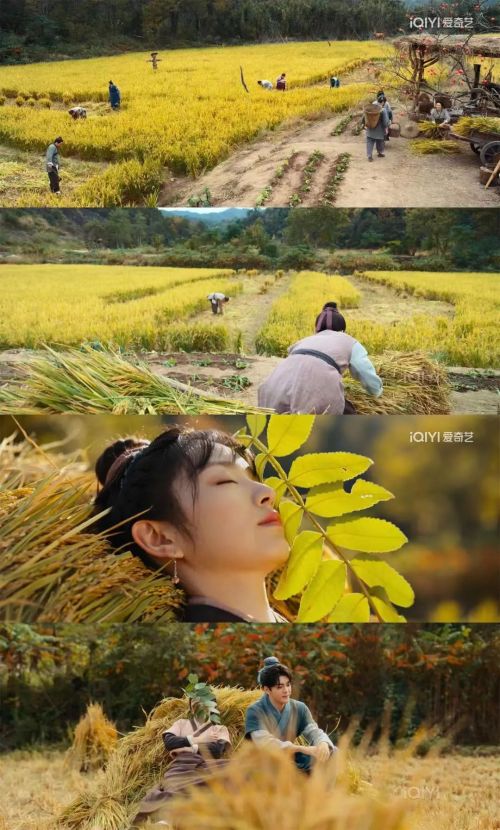 为了展现古代农村的生活,剧组选择了风景宜人的稻田,场景还原度高,水车、瓦房和木头家具等元素增加了古代农村的氛围感,使观众感受到了浓厚的时代气息。