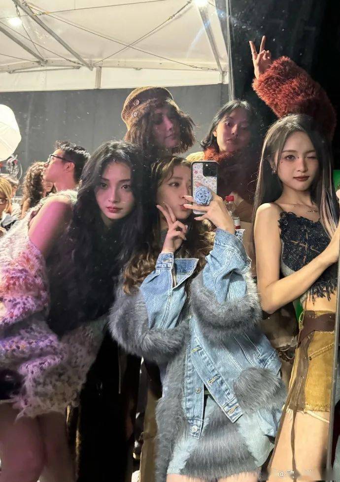 在后台与其他明星们亲密合影。