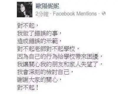 抵赖无果后,她才选择正面道歉,最后,学校给她1个大过、2个小过的处罚。