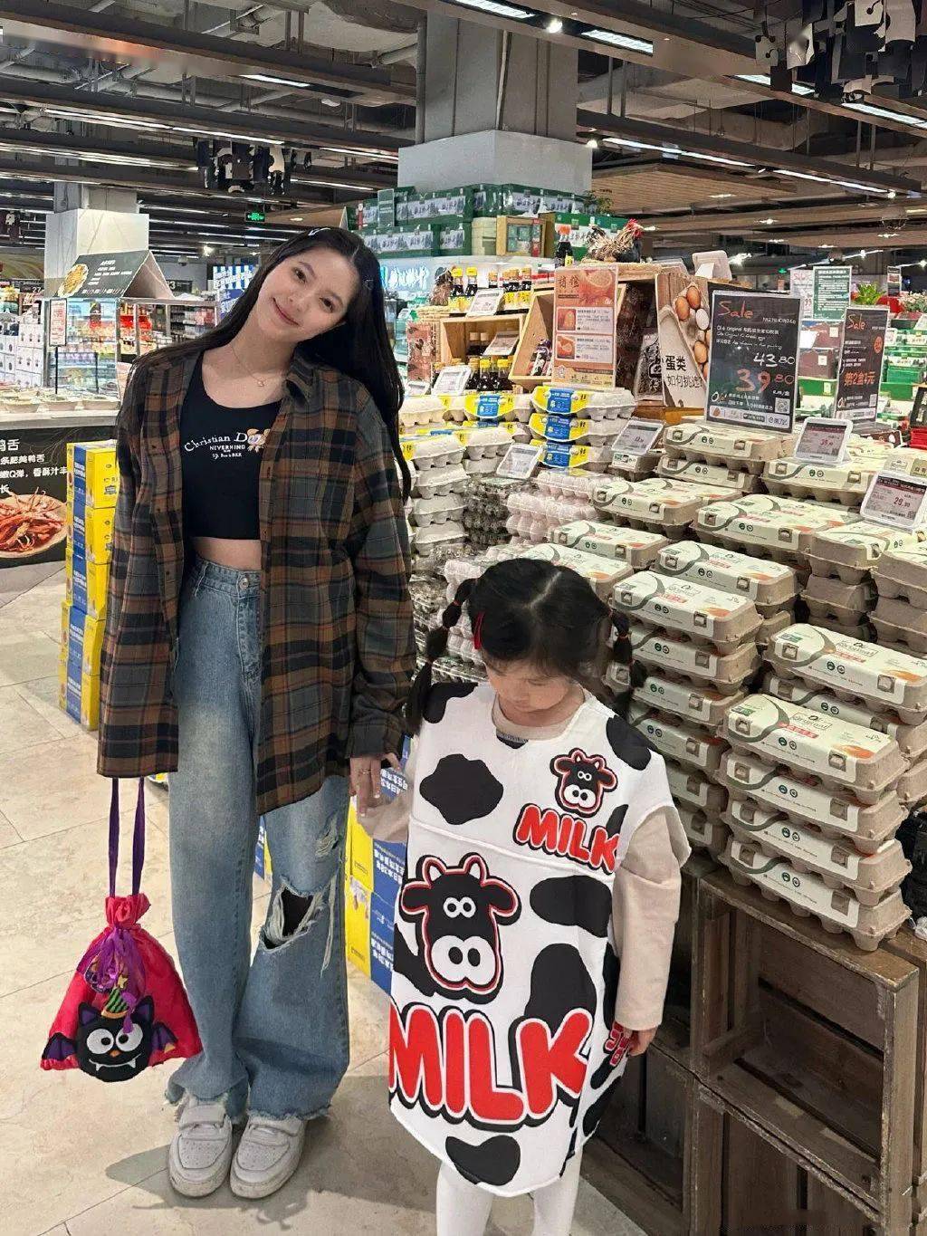 在超市里坐在推车上摆拍,被骂没有公德心。