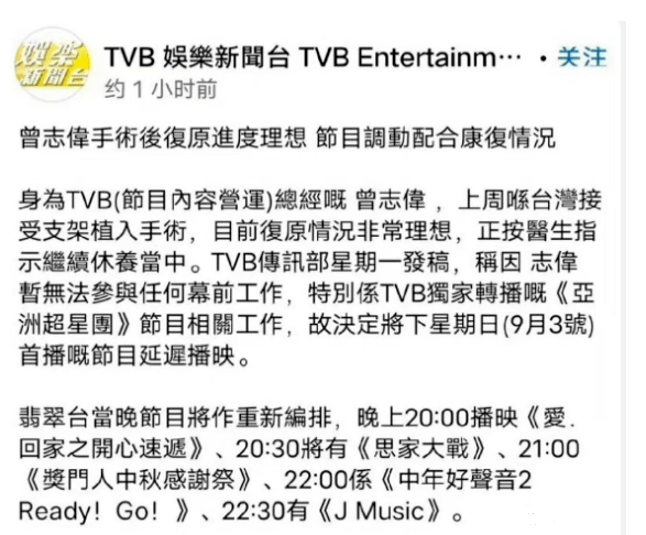 节目原定9月3号就要播出,不巧碰上了发起人曾志伟住院动手术,无法参与任何幕前工作,播出时间只能一拖再拖。