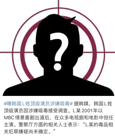 昨天,网上有媒体爆出韩国L姓男星吸毒,并称这位L姓男星在2001年以MBC情景喜剧出道,引起了不少吃瓜群众的关注。