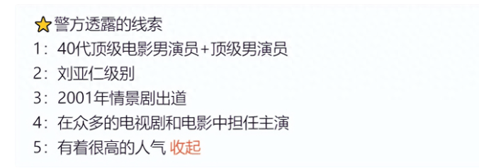 例如线索中提到的,是40代顶级电影男演员 顶级男演员,还是和刘亚仁同级别的,说明这位涉毒艺人是在电影电视领域都有着不俗表现的,而且应该是影帝级别的。同时,还表明该艺人是在2001年凭借情景剧出道,这些年人气也是高居不下。