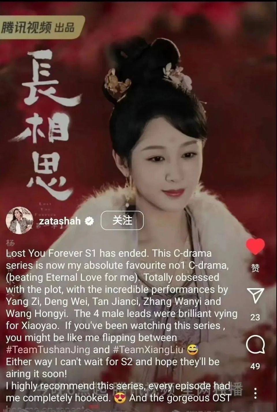 甚至马来西亚公主TENGKU ZATASHA、泰国国民女星Aump砂楚都发帖表达对《长相思》的喜爱,并问“第二季什么时候来?”