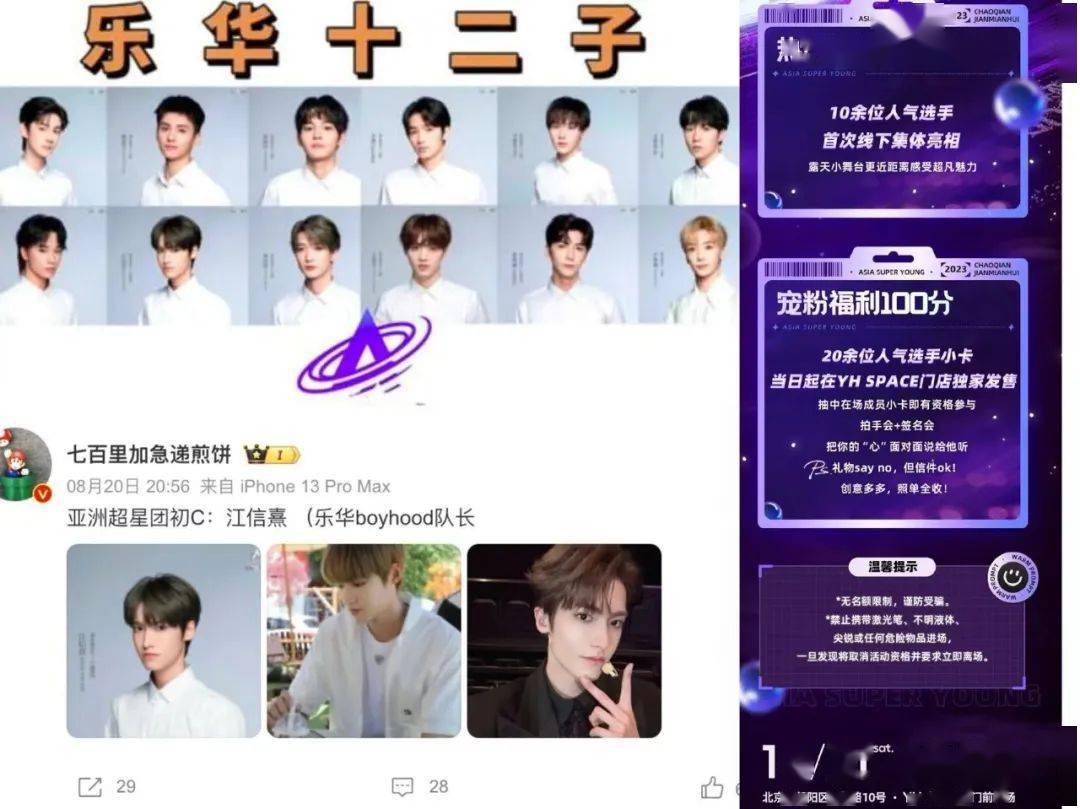 不仅如此,乐华艺人朱正廷、程潇还是《亚洲超星团》的导师。而且,据参与过录制的网友反馈,节目选出来的“初C”叫江信熹,正是乐华旗下男团boyhood的队长。更离谱的是,《亚洲超星团》播都没播,却要在北京举办人气选手的线下超前见面会,见面会的地点正是乐华新店YH SPACE。看来,曾志伟和灿星联手也是给他人做嫁衣,不知道还以为是乐华公司的内部选秀。