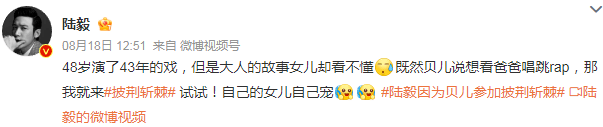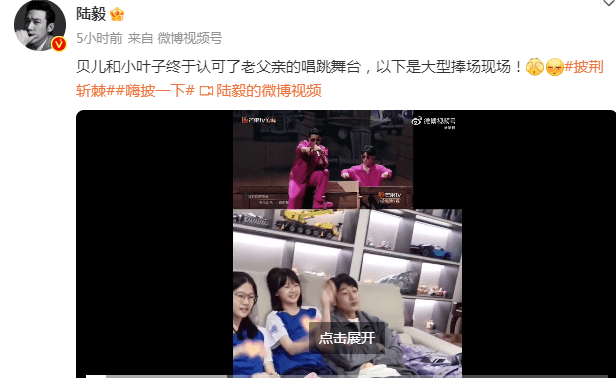 10月17日,演员陆毅在个人社交平台分享出带着两个女儿追他参与录制的《披荆斩棘》综艺,他还骄傲表示:“贝儿和小叶子终于认可了老父亲的唱跳舞台,以下是大型捧场现场”,言辞中满满成就感。