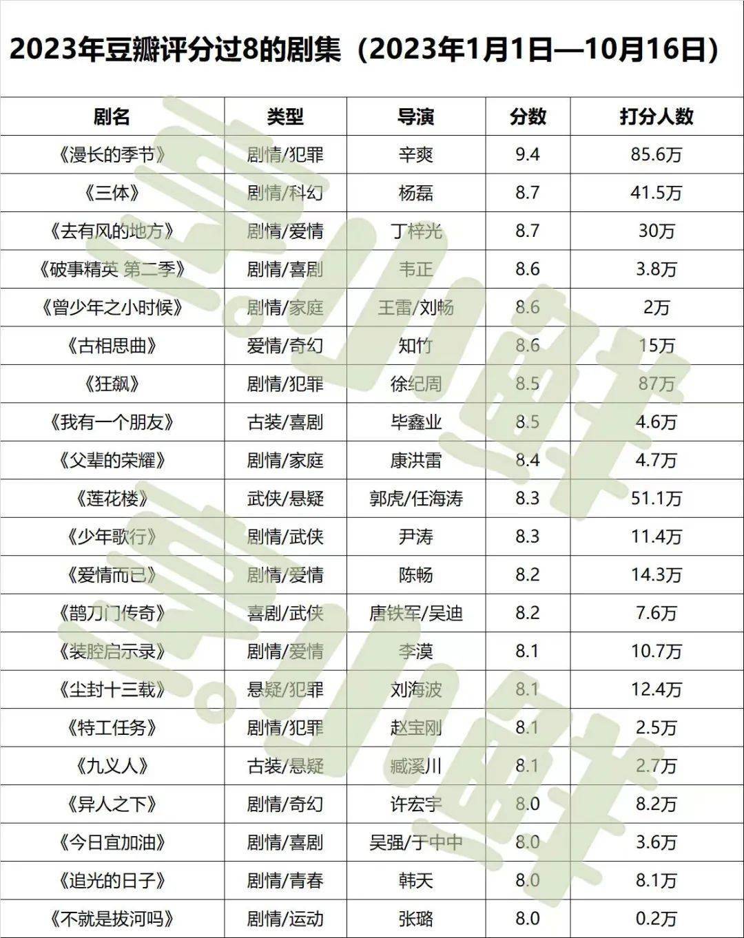 能打破圈层的、形成全民追剧热潮的作品越来越少,取而代之的是各个细分赛道上的排头兵,各自聚拢对应观众。只要这些作品能够做到本赛道的前列,豆瓣评分肯定不会低。