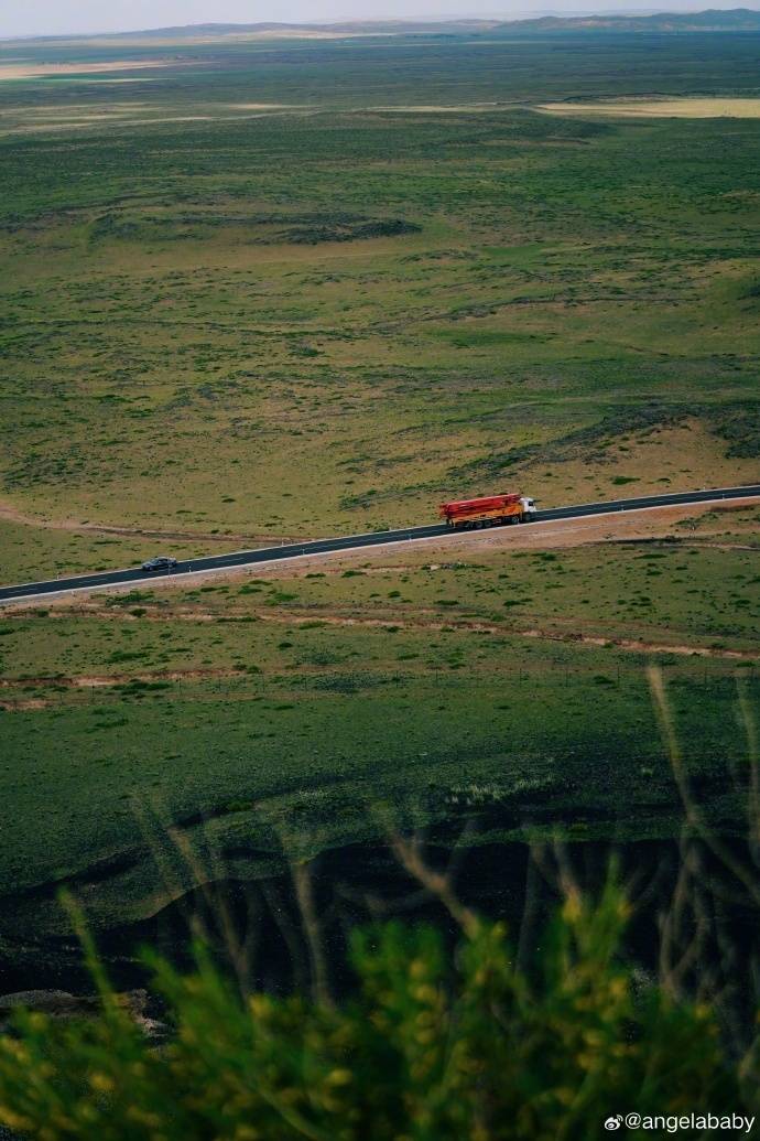 Angelababy分享的美照有一望无际的青青草地,中间的公路上有飞驰而过的卡车和轿车,也有绵延起伏的群山,还有郁郁葱葱的森林,以及晴朗的天空。这些照片不知道是她近段时间游山玩水时,拍下的沿途风景,还是昔日的库存美照了。