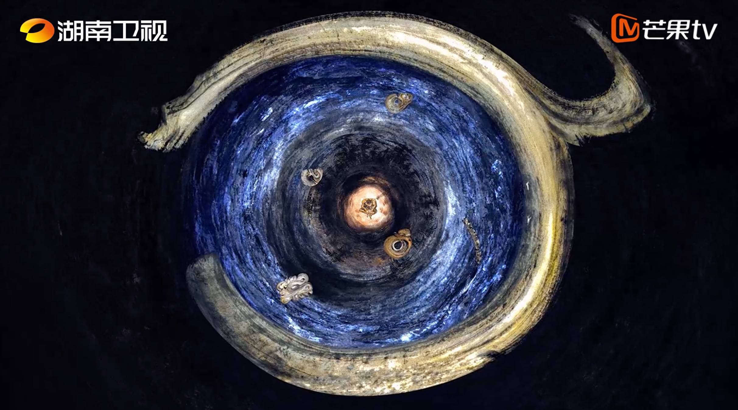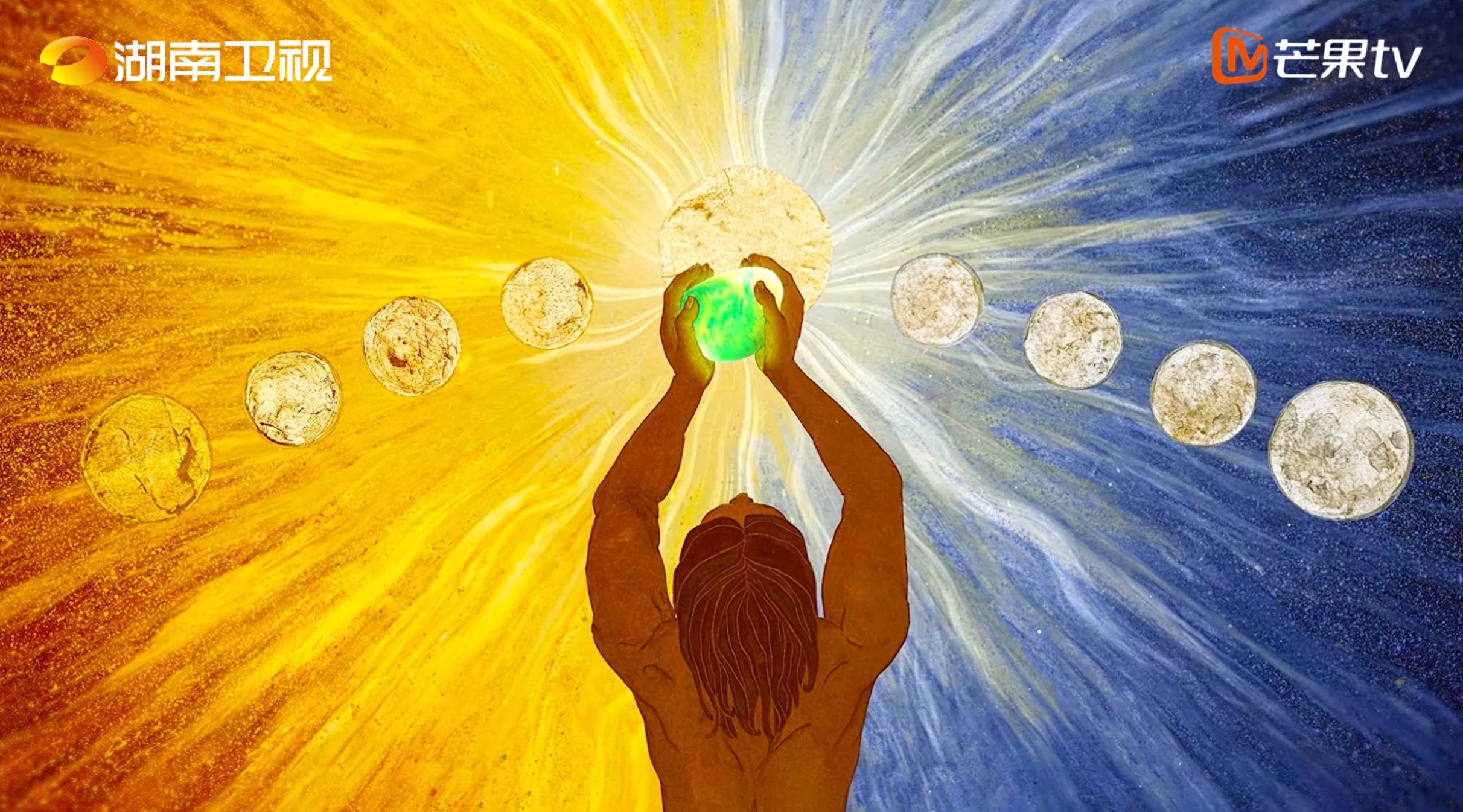 为把握好史前文明特点,第五集《双璧》的绘画,以写意水墨为主要风格,运用了破墨、积墨、浅绛设色等传统水墨画技法,通过肆意奔放的笔墨语言突出史前先民本源的生命力和信仰的初始形态。同时,在镜头语言上,更是将“俯瞰”进行到底,多运用俯拍视角,隐喻古人“以玉事神”,将玉器视为与上天沟通的媒介。