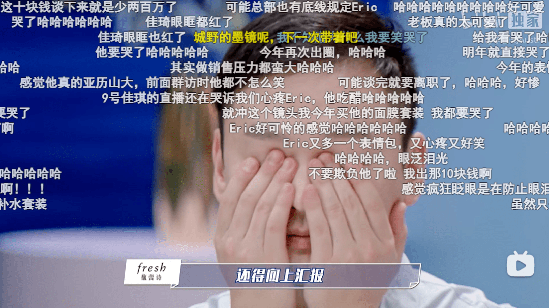 上一季出圈名场面,馥蕾诗品牌中国区电商负责人Eric被李佳琦砍价砍到哭出来,砍到弹幕都有几分不忍。