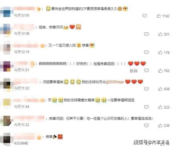 结婚消息一出,网友们纷纷送上祝福。评论中,有网友夸赞说:“刘问老公的身材太棒了,真是羡慕!”还有网友表示:“这两人看起来真的好般配,希望他们永远幸福!”除此之外,众多娱乐圈的明星也为两人送上祝福。
