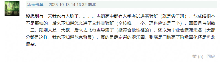 哦对了,相比较万里扬个人履历资料方面的故事性,另外还有一位自称万里扬同学的网友爆料,称万里扬高中月考回回倒数,却能进入顶尖学子才能进入的实验班。