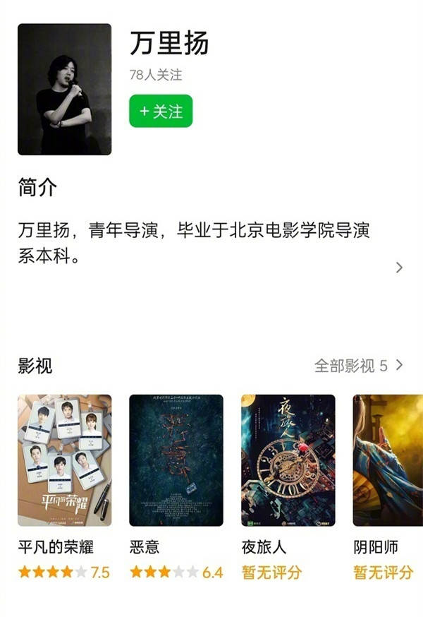 另外,万里扬还执导了网剧版《阴阳师》,以及担任了《平凡的荣耀》B组导演。