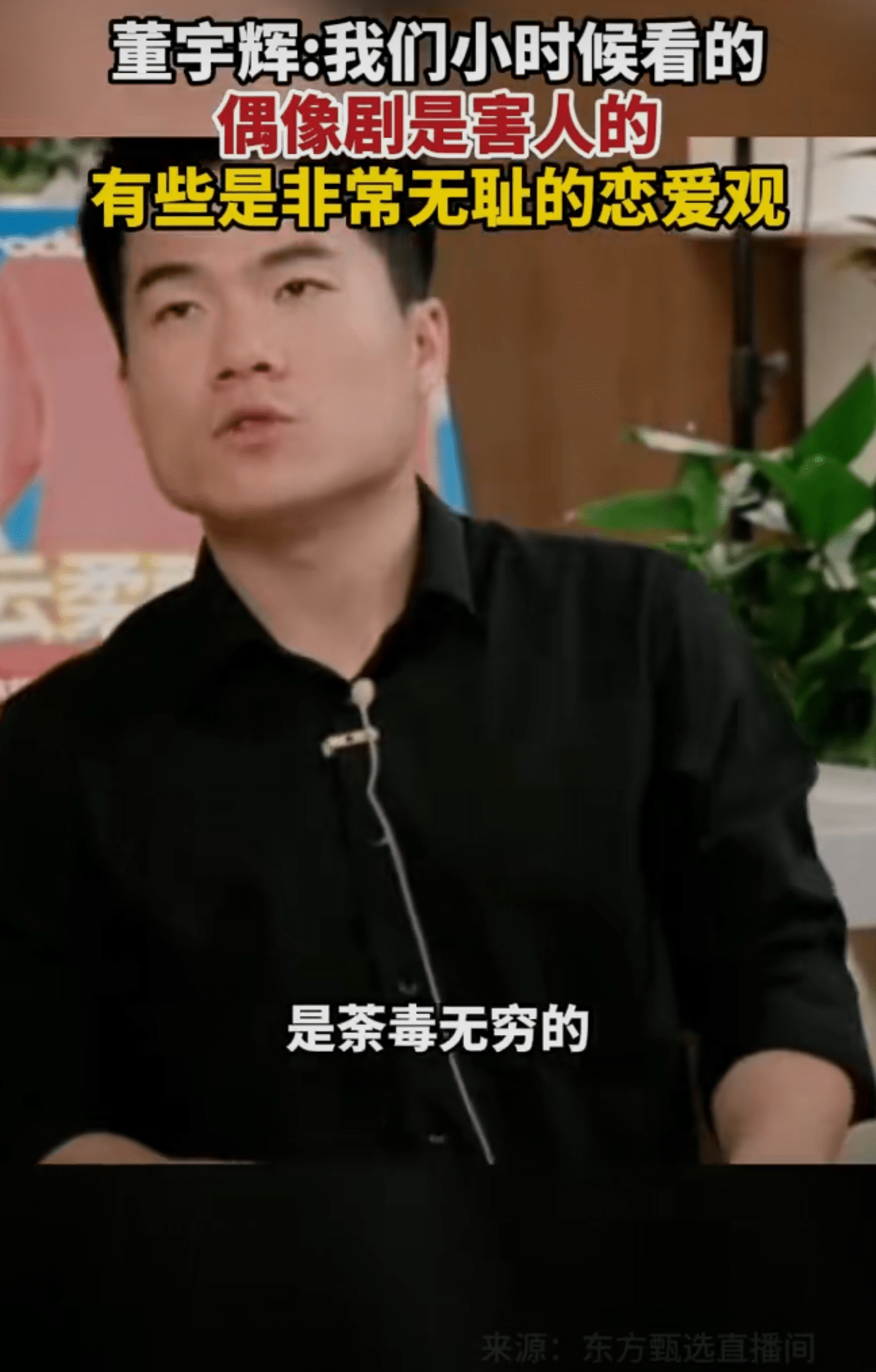 原标题:恋爱脑害人?董宇辉称无脑偶像剧有些是非常无耻的恋爱观