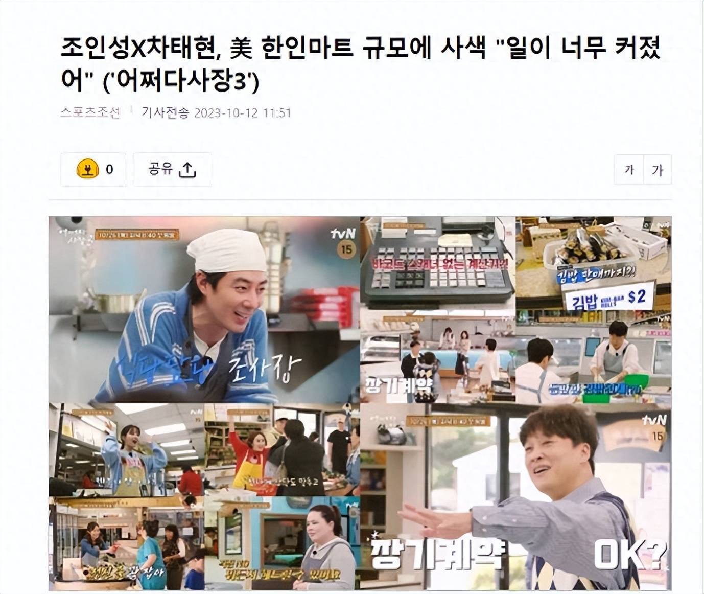 12日,有韩国媒体报道,在10月26日首播之前,12日,tvN综艺节目《偶然成为社长3》公开了一段精彩视频,展示了恰巧在美国经营一家韩国超市的车太贤和赵寅成的情感变化。
