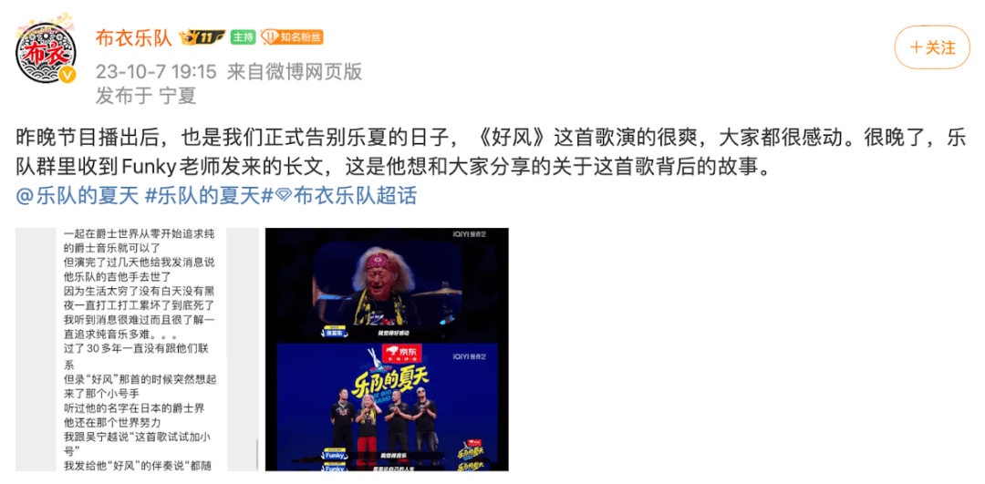 站在舞台上,看着前面“乐队的夏天”五个字,他心里想:“我的夏天结束了。”