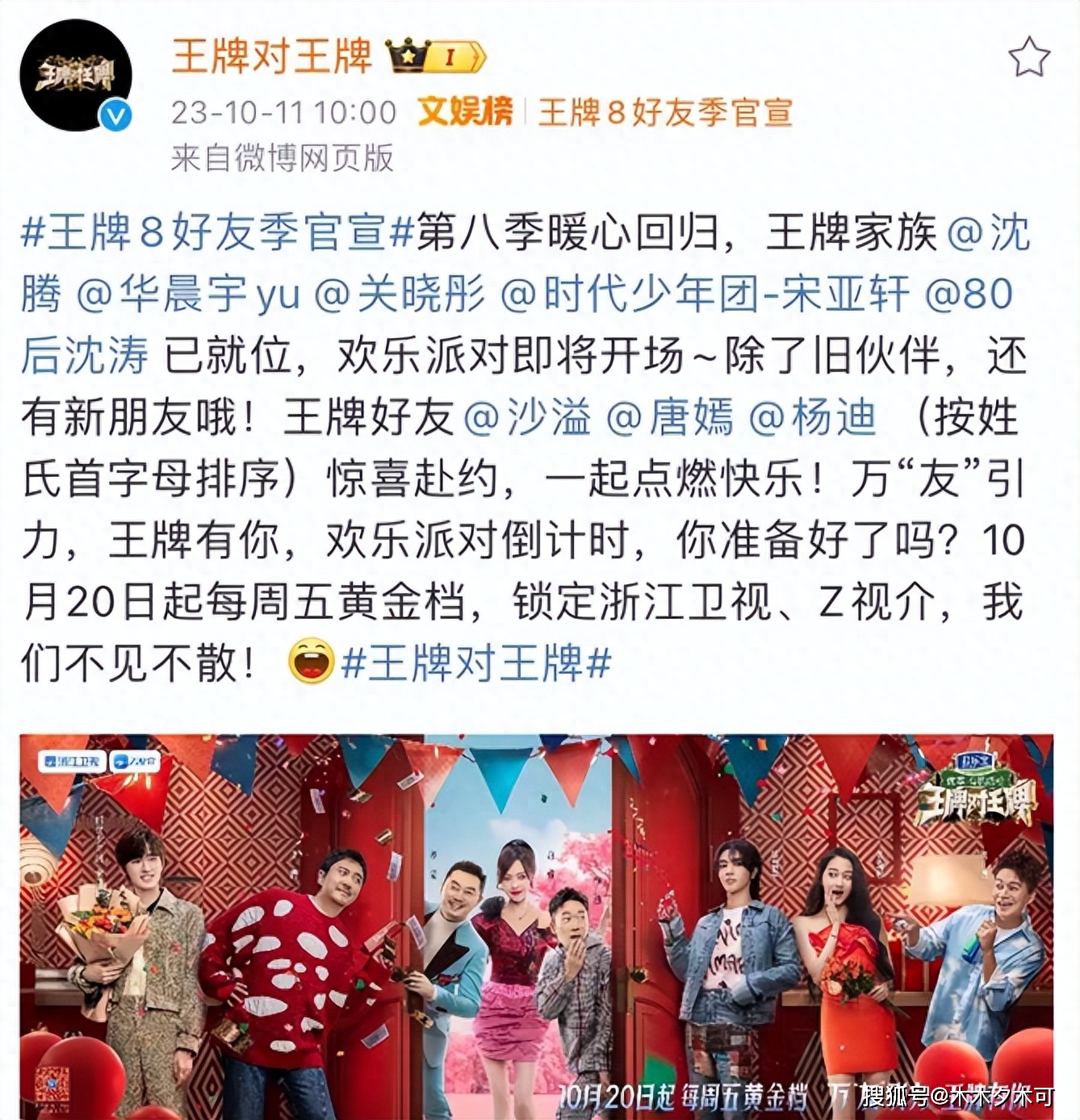 10月11号,备受期待的《王牌对王牌》第八季终于官宣阵容并定档啦,10月20日起每周五晚黄金档,快乐源泉即将袭来。