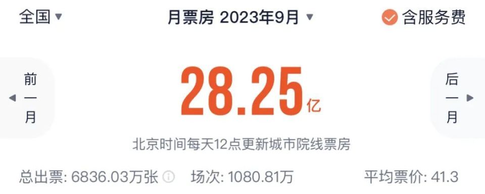 不知道今年是不是都想蹭上暑期档的余温,九月的“内卷”比往年格外激烈些。但卷也没卷出个好结果。九月票房28.25亿,虽然比过去三年的成绩都更好,但在历史上只能排第五。