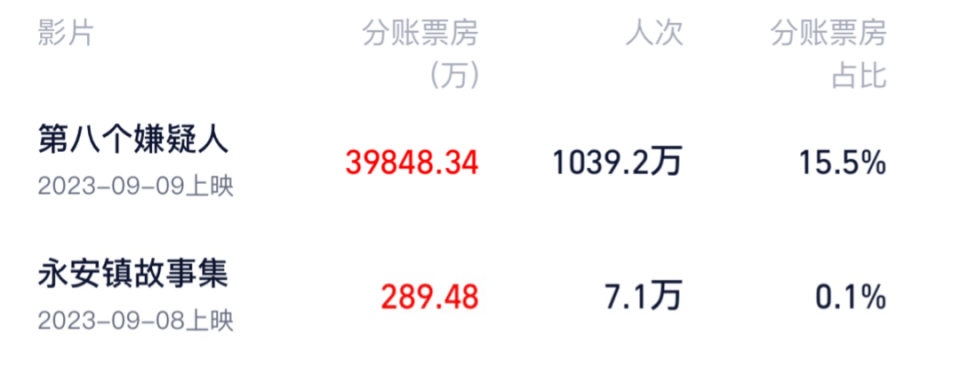 失去进口片支撑之后,除了一众国庆档大片有两天半的时间在9月贡献了票房以外,唯一能打的就是一部《第八个嫌疑人》。接近4亿的票房,让它成为了9月票房冠军。