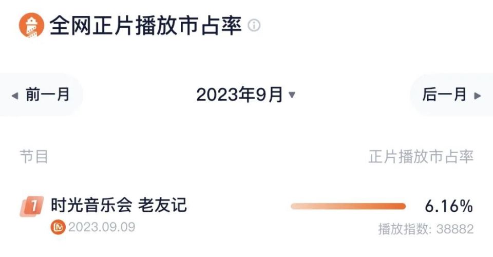 灯塔专业版显示,在当月上新综艺中表现最为突出的是《时光音乐会 老友记》,成功登顶9月全网正片播放市占综艺月榜,在舆情热度月榜上位列15名。本季《时光音乐会》打造“时光之家”的概念,在关注音乐本身的同时也在讲述音乐人之间的友情故事,延续了音乐慢综艺的节目风格——这可能也是节目在舆情热度榜单上成绩并不突出的原因。