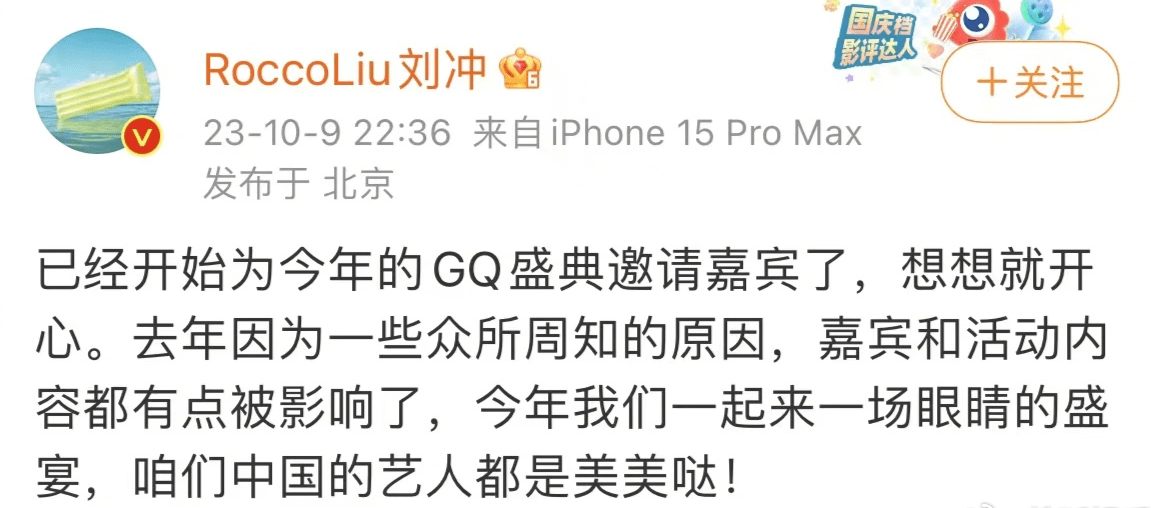 GQ主编刘冲喝多之后变身大漏勺,直接和网友聊上了,而且无所不谈,从拟邀名单到对明星的评价,刘冲真的是非常坦诚。