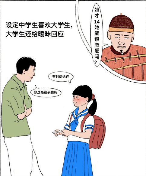 而这部现代剧,男主居然和14岁的女主搞暧昧,也太违反常理了,这可不是清朝人都看不下去吗!