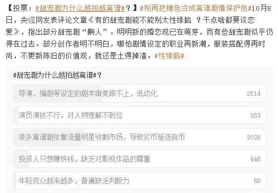 有媒体发起投票,提问这些甜宠剧为什么越拍越离谱。