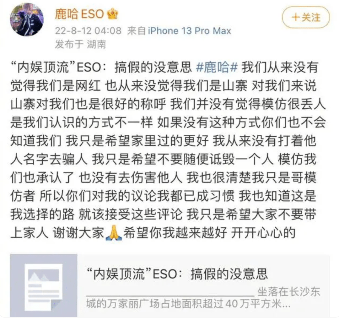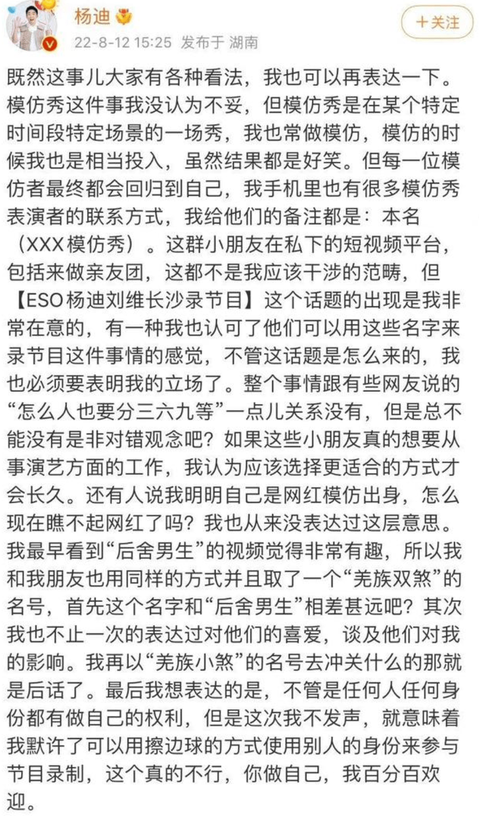 甚至表明自己没有伤害任何人,模仿也并不丢人⬇️