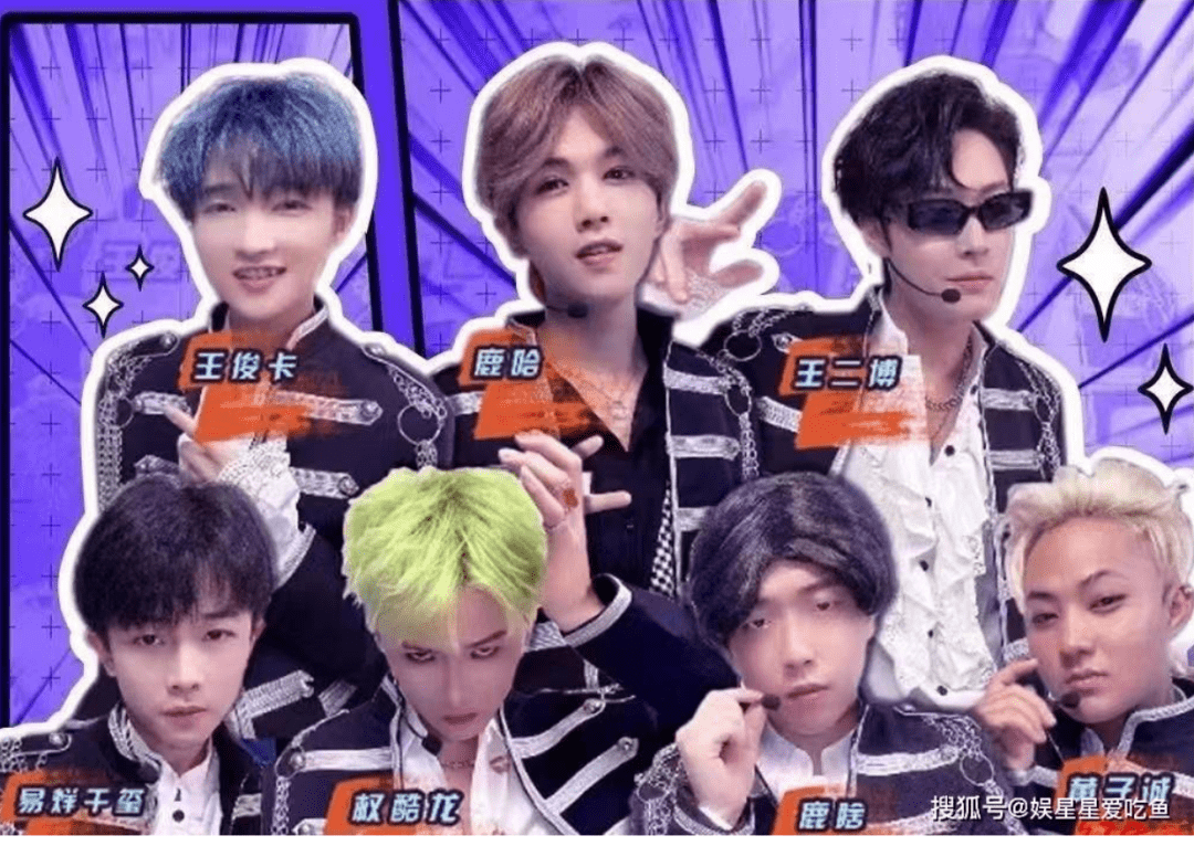 组合内成员还有黄子诚(模仿黄子韬)、权酷龙(模仿权志龙)、王二博(模仿王一博)、王俊卡(模仿王俊凯)、易烊干洗(模仿易烊千玺)等⬇️