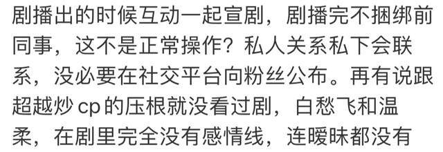在刘宇宁粉丝看来,剧播的时候宣传剧,剧播完不捆绑前同事,纯属正常操作。和杨超越炒CP的传言也不是真的,那部剧里刘宇宁和杨超越根本没有感情线,暧昧关系都算不上,这么谣传实在太荒唐。