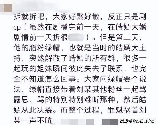 对于刘宇宁在剧没播完就亲手拆CP的行为,粉丝们尤为寒心。即便不想和前一部剧有任何关联,至少要做到好聚好散。甚至在自己粉丝轮流去骂赵露思的时候,刘宇宁美美隐退,彻底激怒了赵粉。