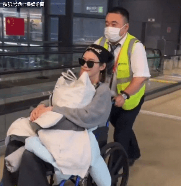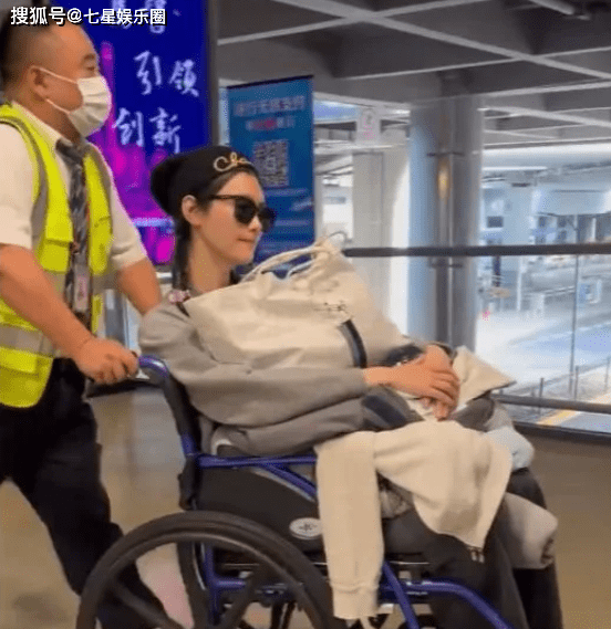 10月2日,奚梦瑶坐着轮椅现身机场,当天戴着毛线帽和墨镜,手里抱着大布袋和外套,在几位助理和保安大哥的护送下走出机场。