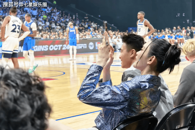 买不买房不确定,但是两人来看球是确定的,在NBA比赛现场,两人就座在第一排观赛。