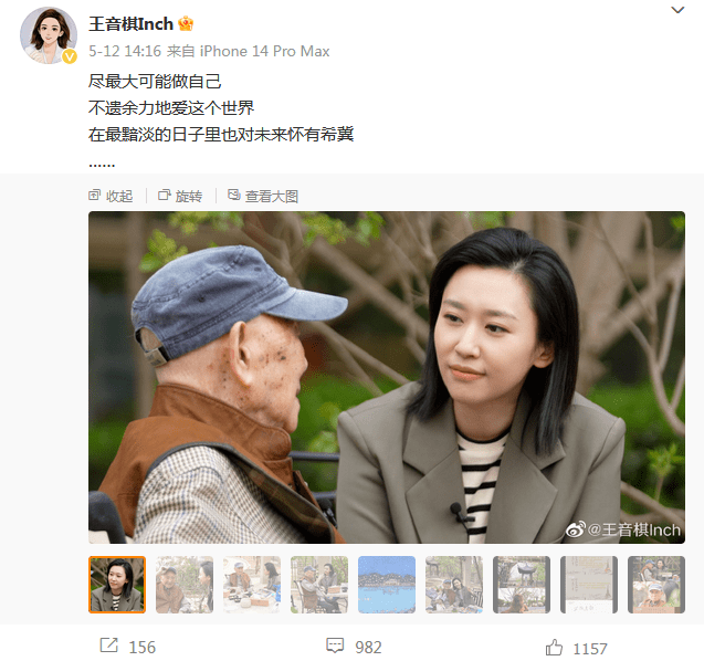 目前,身为央视当红女主播的王音棋很低调,她微博就发过两条,其中一条是慰问老人,还写着:“尽最大可能做自己,不遗余力地爱这个世界,在最黯淡的日子里也对未来怀有希冀!”