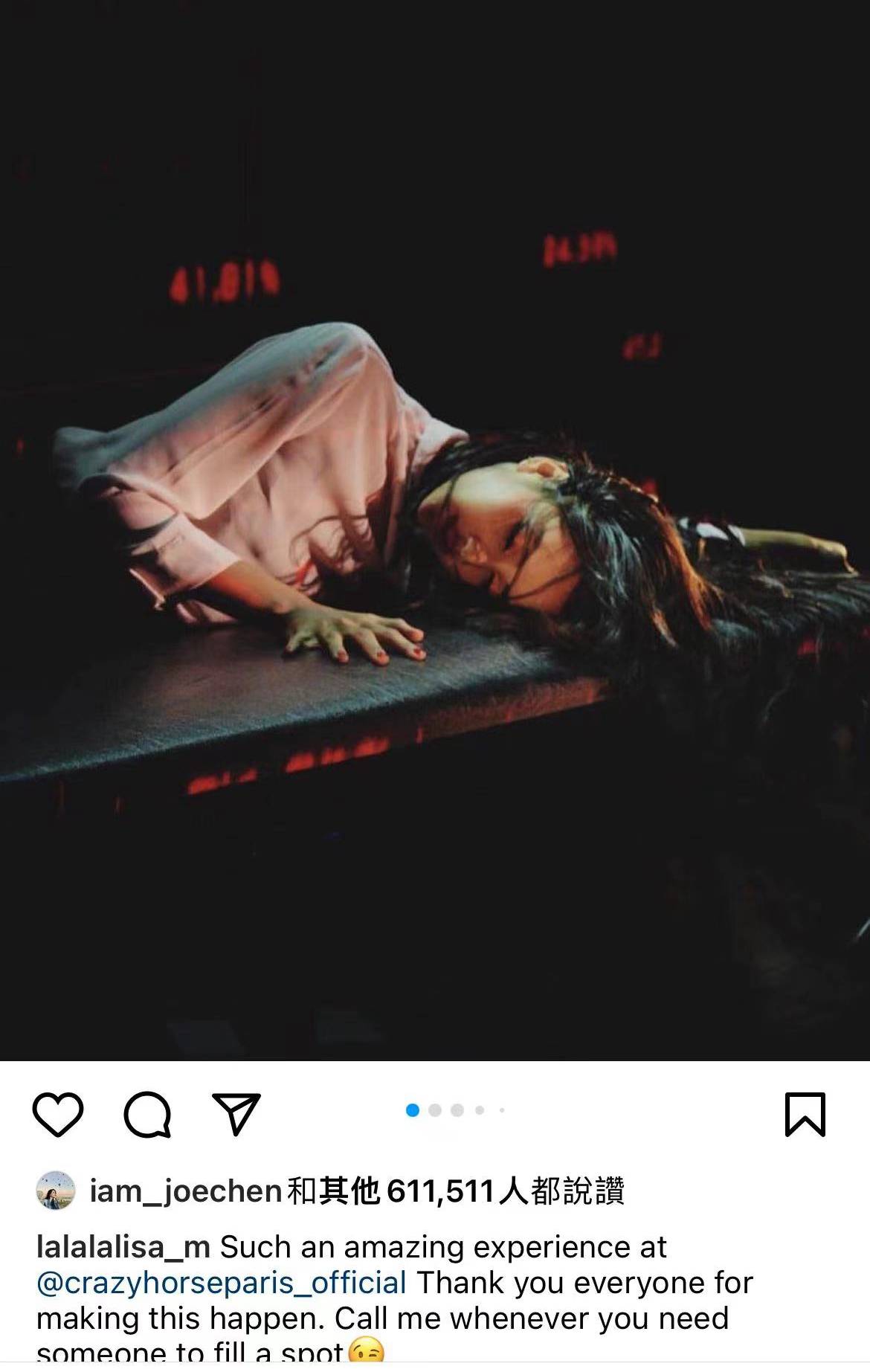 事实上,网上流传多张Lisa在“疯马秀”的演出,照片画质多为模糊不清,难以分辨是否本人。