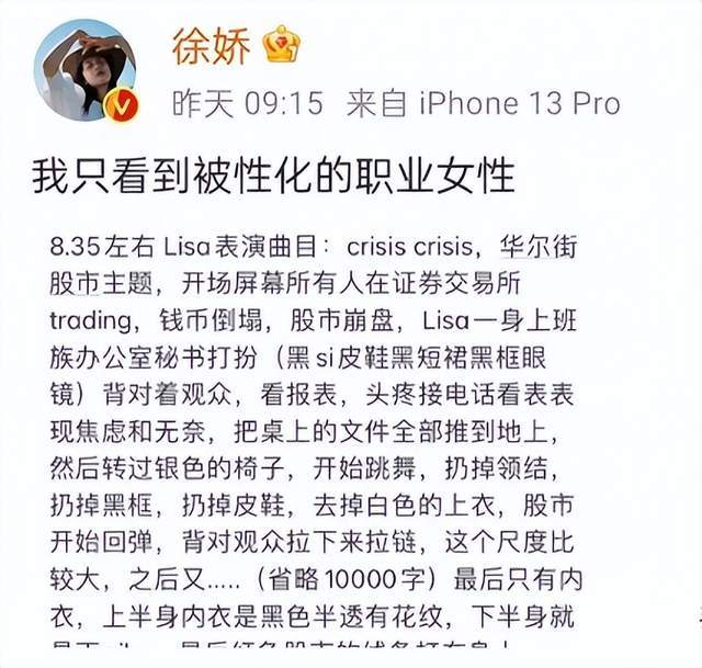 疯马秀在国外可能已经成为常态,但这样的表演形式的确不应该推广,就像徐娇评价:被性化的职业女性。