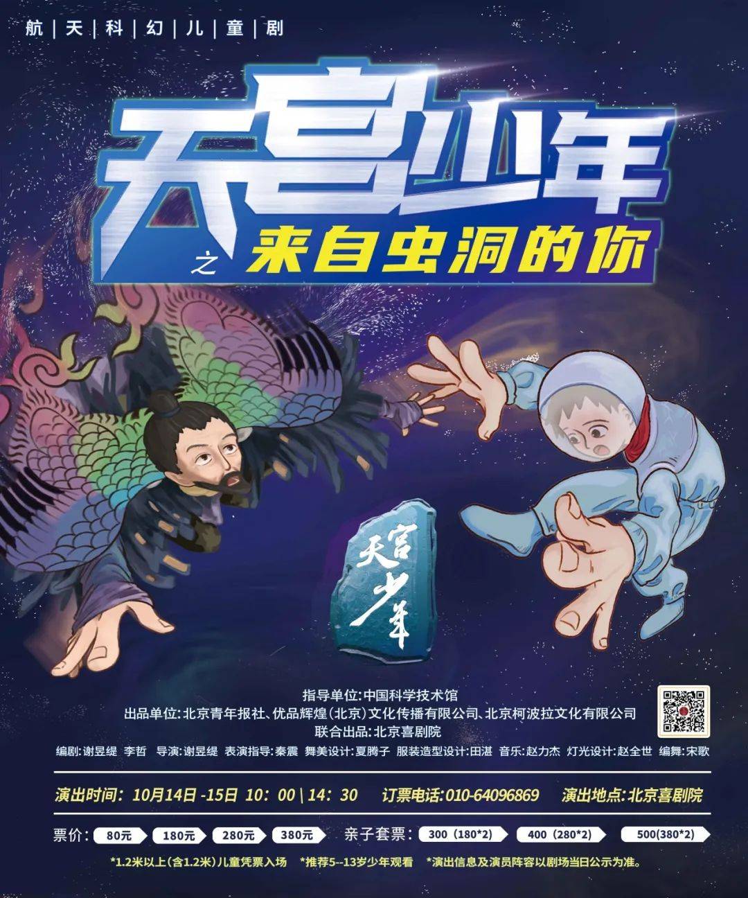 其中代表性作品航天科幻儿童剧《天宫少年之来自虫洞的你》现已开票。舞台艺术融合航天科技的原创IP作品,兼具专业性、娱乐性和教育性,可以启迪儿童心智、激发儿童学习热情。