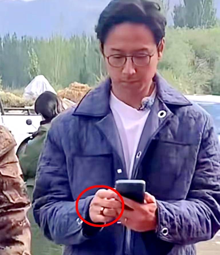 吴千语戴着同款戒指,尺寸比施伯雄的要小: