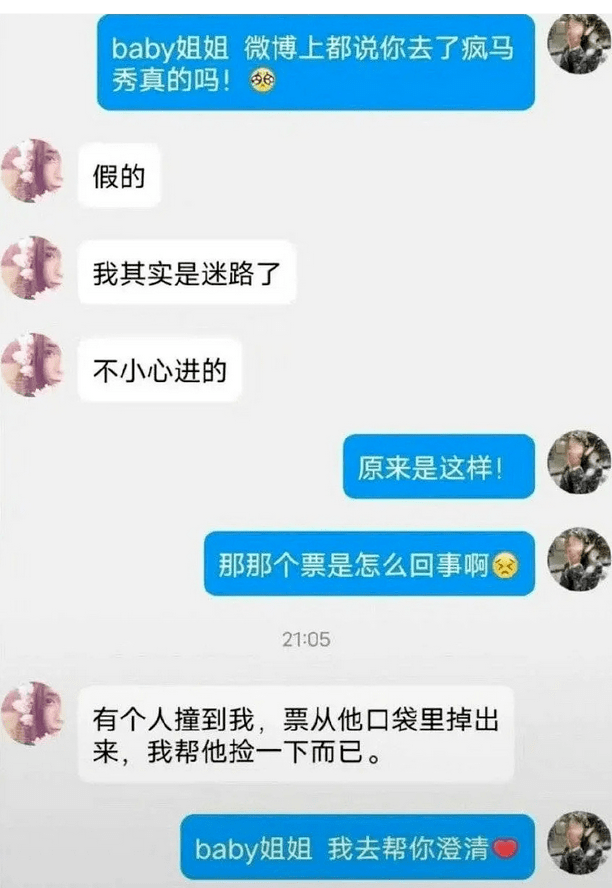 不出意外的话,baby那边明天会给一个正式的回应,大致意思就是撇清关系,就看她怎么说了吧。
