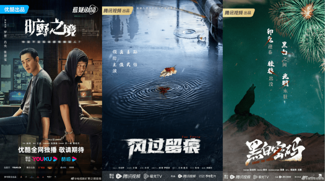 优酷和腾讯视频的片单则为悬疑类型设置了专门的赛道,分别是“悬疑罪案”和“智”赛道。具体剧集包括优酷的《旷野之境》《暗恋者的救赎》《隐瞒之事》,腾讯视频的《风过留痕》《黑白密码》《黑白森林》等。