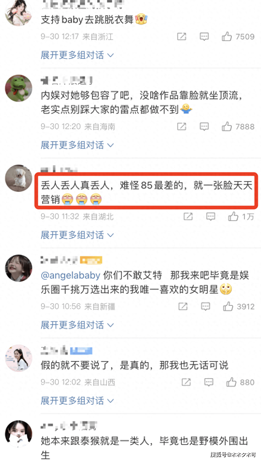 众所周知,这些年baby的演技一直是她的硬伤,观众大多是因为她的颜值而对她放低要求,baby的颜值确实令人赏心悦目,而且她综艺细胞也不错,当不了演员当个大明星也可以,毕竟脸在江山就在,可这次baby的行为却触碰了网友们的底线,后续她要是不出面回应,她的星途很有可能就此毁于一旦。