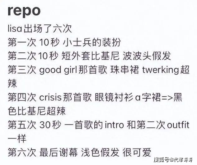 从曝光的大合照来看,Lisa的穿着也和其他人不同,别人都是用手捂着胸,而Lisa则穿了一件比基尼,甚至被网友吐槽搞特殊。虽然和网传的不同,但Lisa表演的尺度依然非常大胆,甚至将脱下来的衣服扔给观众,从而被吐槽低俗。