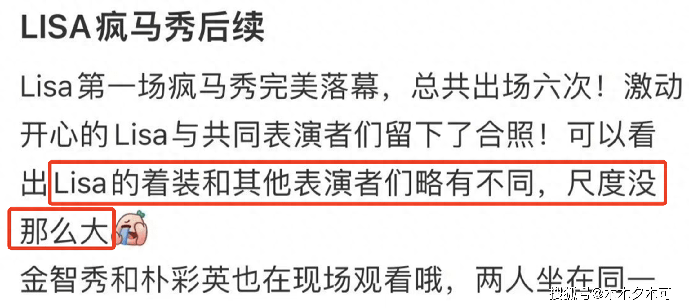 对于这场疯马秀,网友直言很难评,也不知lisa是怎么想的,要去做这种擦边的事,明明已经是顶级爱豆了,资源已经是逆天,却还要打着艺术的幌子去脱给外人看,网友很难去认可这样的艺术。