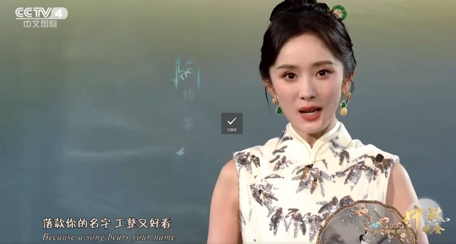 杨幂身着中式旗袍亮相,与Kirsty刘瑾睿共同演绎歌曲《若把你》,竹影摇曳、烟雾缭绕,国风舞台尽显唯美意境。
