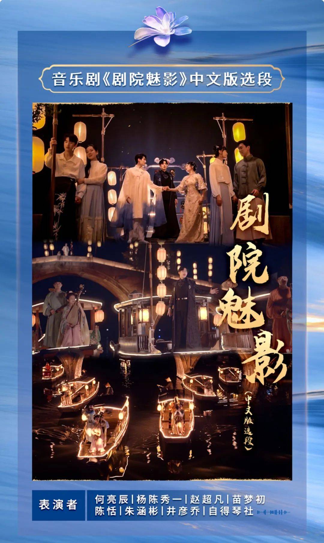 今晚,观众可以跟随镜头从黄浦江畔出发,沿苏州河漫步,甚至去到朱家角古镇,在水乡的夜色中,观赏一出中西合璧的《剧院魅影》选段。这场表演由《剧院魅影》中文版三位主唱音乐剧演员、自得琴社的乐手以及《爱乐之都》的人气选手携手演绎,展现了传承千年的民族器乐与经典西方音乐剧融汇交织而成的一首别具中国韵味的“魅影”旋律。