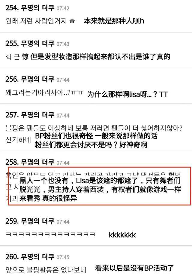 这也和之前官方爆料的“Lisa要求按照原曲表演”所一致,只是服装的特殊化还是遭到了韩国网友们的吐槽。“如果那么骄傲是艺术的话,为什么自己一个人的服装不一样呢?”“Lisa该穿的都穿着,舞者们快脱光光,台下的有权者像游戏一样看秀,这样的场面不觉得讽刺吗?”有韩国网友直接喊话Lisa:以后别再继续当爱豆了!
