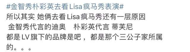 还有网友理清了更深层次的关系,或许金智秀和朴彩英的到场也是因为她们都是LV旗下奢侈品牌的代言人,只能说利益关系确实是什么时候都绕不开的话题。