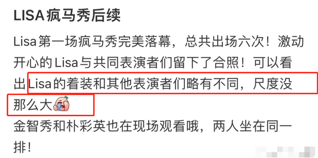 另外Lisa同团的队友金智秀和朴彩英也都来现场支持Lisa,据悉两人在内场坐在同一排,离开的时候还被拍到了照片。